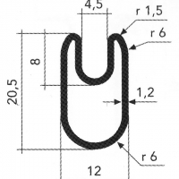 Tube rectangulaire 45x15x1,5 mm.